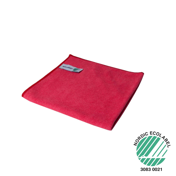 De gebreide microvezeldoek in de kleur rood is geschikt voor vele toepassingen waaronder interieur, sanitair, keuken en vloeren.